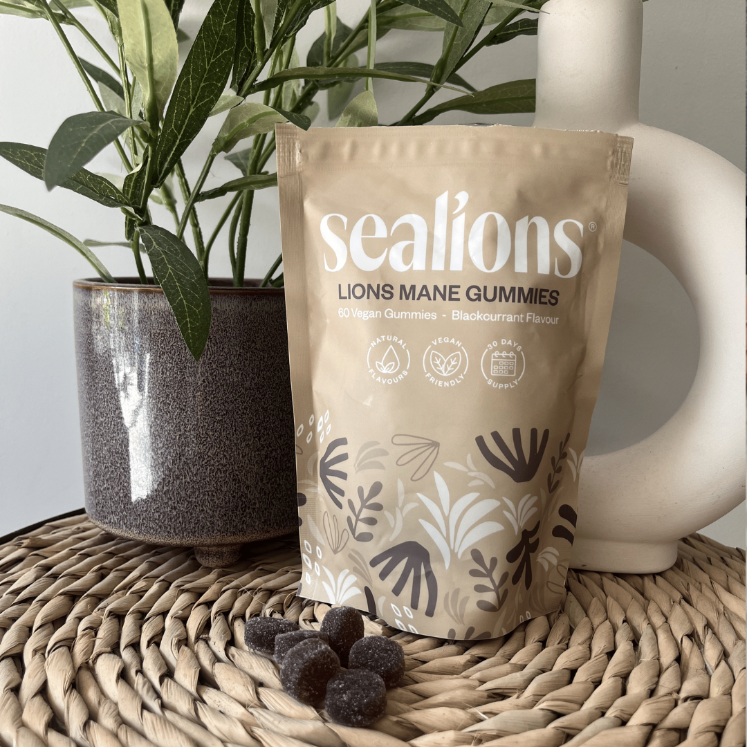 Sealions Lions Mane Gummies will help you stay sharp, think fast, and support your brain health. Delivering a 2500mg high strength formula of Lions Mane mushroom extract in every serving (2 gummies). With a tasty but natural blackcurrant flavour and a vegan-friendly formula, these gummies are the perfect product for those with busy minds, academic, and anyone looking to support general cognitive wellness.