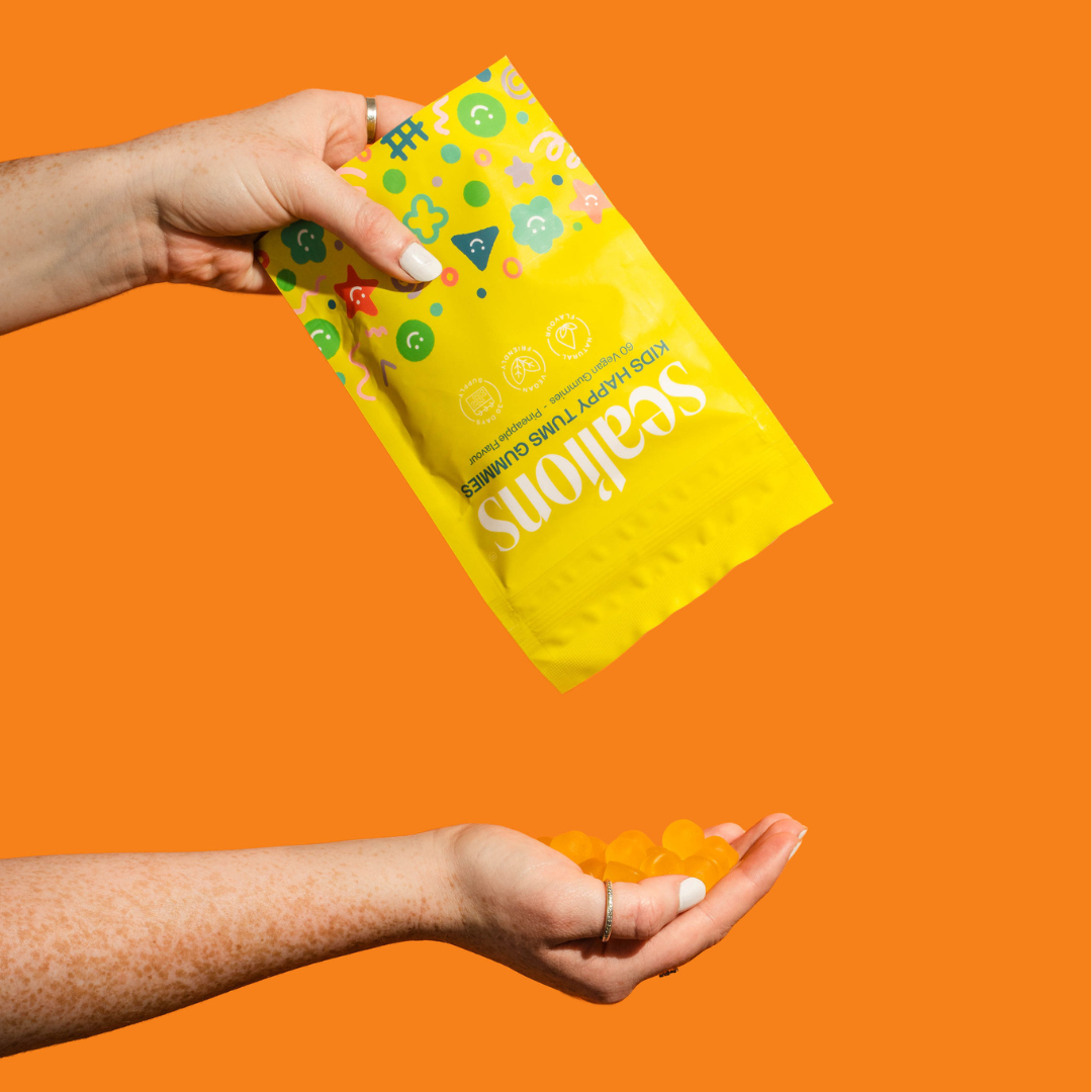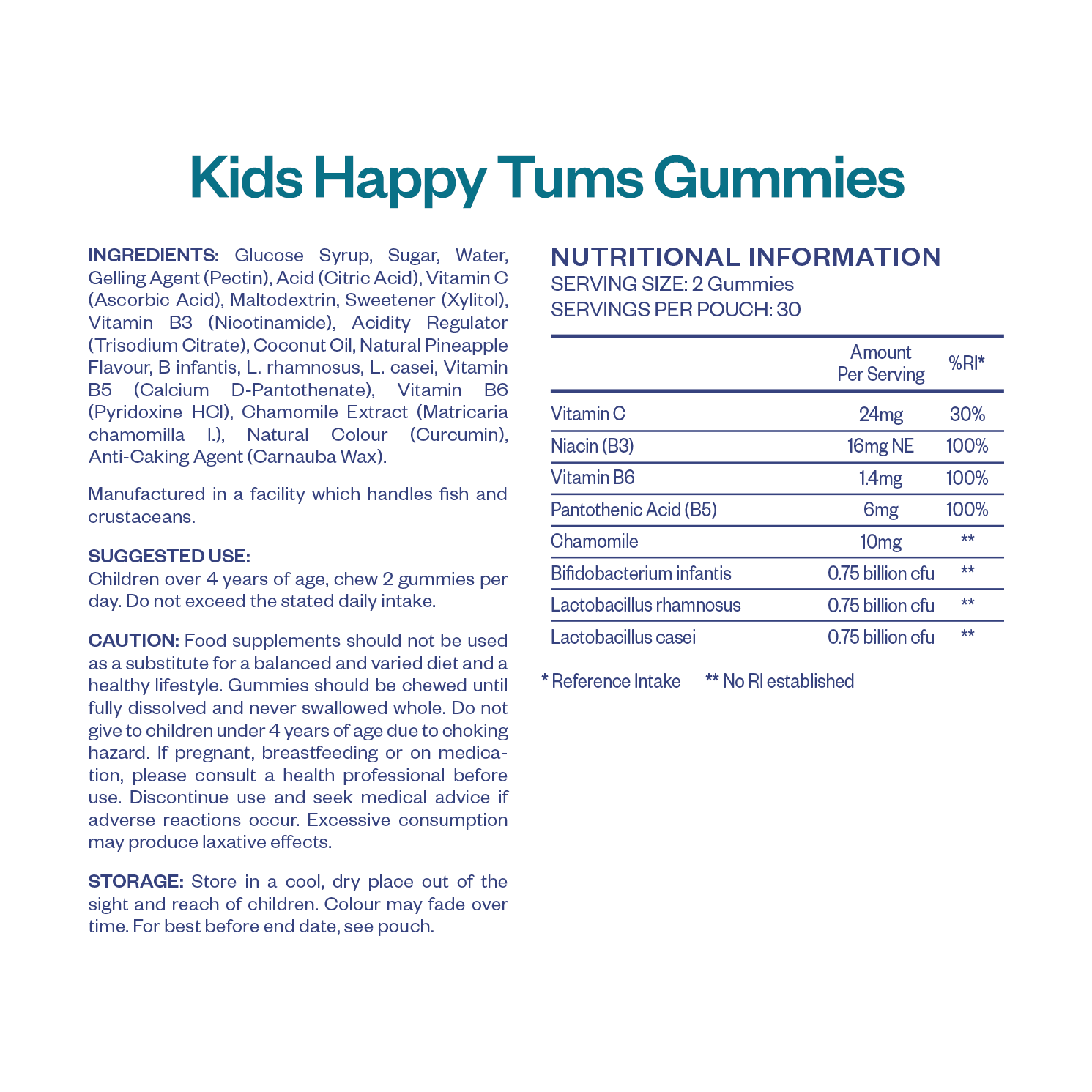The Happy Tums Gummies are specifically formulated to support healthy digestion, featuring gentle, child-friendly ingredients that help keep little tummies comfortable and balanced.